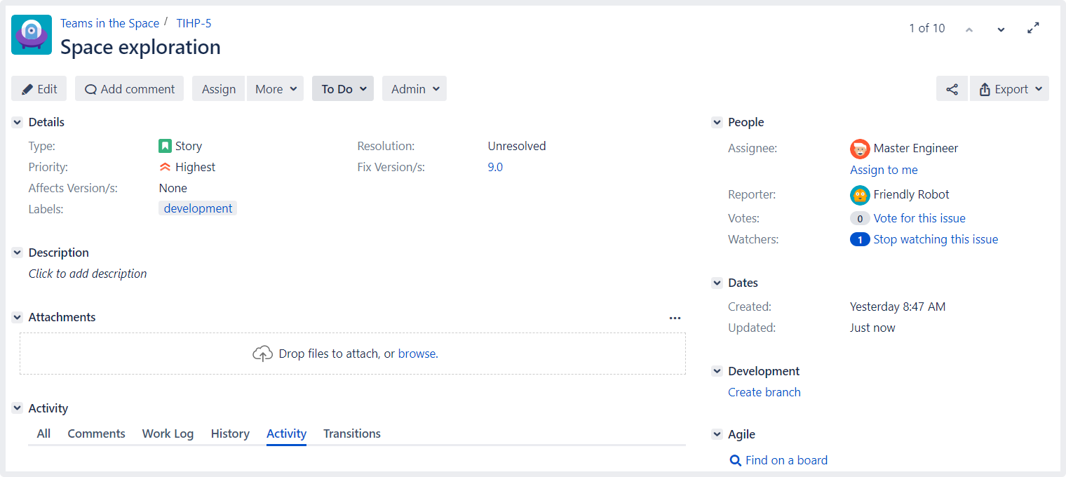 If Jira doesn’t find the user’s data in any of the sections, these items won’t be displayed at all. In that case, what you see may differ slightly from these examples.