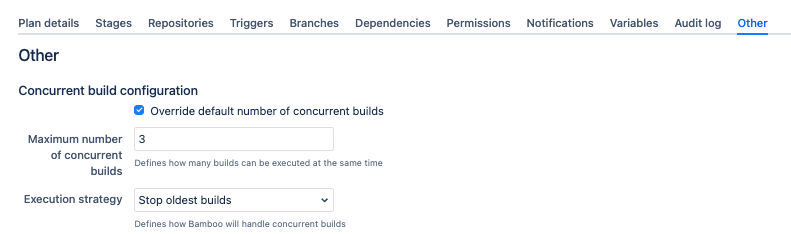 other: concurrent-build-plugin: number-of-concurrent-builds: '3' execution-strategy: stop-oldest-builds