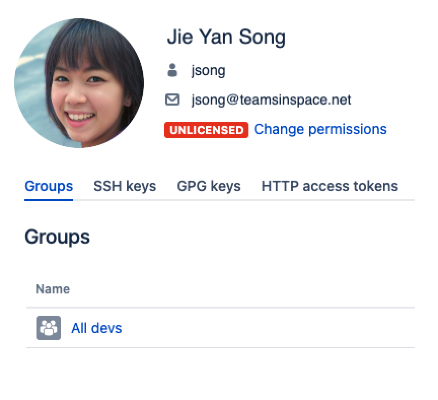 - Once you've created the user, click Change permissions to set up their access permissions. Note that a user doesn't have access to Bitbucket until global access permissions have been set.