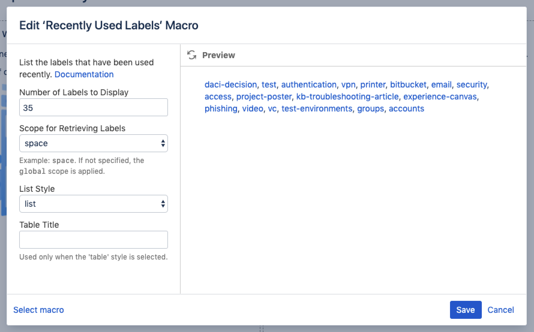 {recently-used-labels:title=My title|scope=space|style=table|count=20}