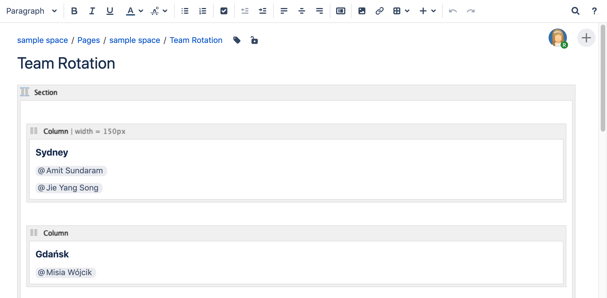 You can then start typing into the macro body, add some Column macros, then publish your page to see the macro in action.