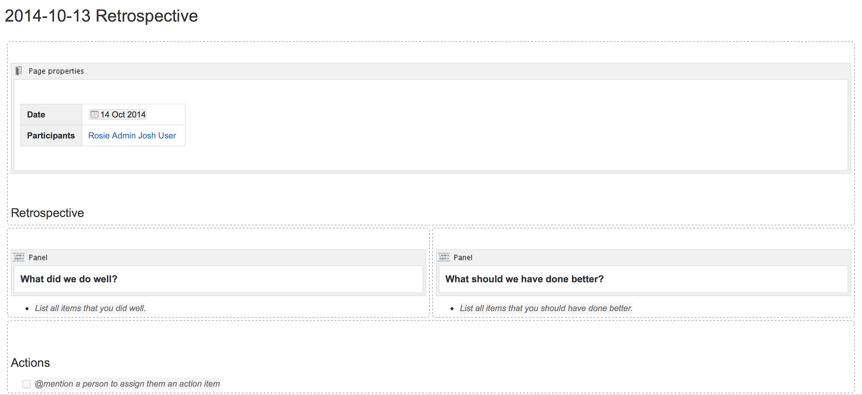 The Retrospective blueprint uses the following Confluence features: