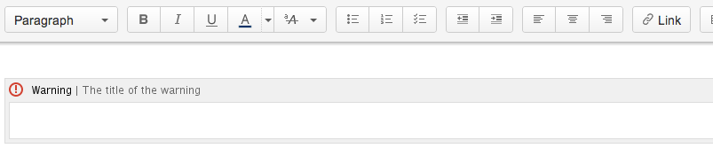 Let's assume an author adds the Warning macro to a page, and gives it a title of 'The title of the warning'. The macro configuration leads to a placeholder as shown here: