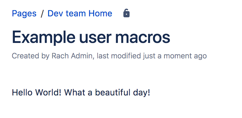 We recommend thoroughly testing your user macro with a number of permission scenarios, such as restricted pages and space permissions to avoid inadvertently displaying content that a user has no permission to see. See User Macro Template Syntax for more information.