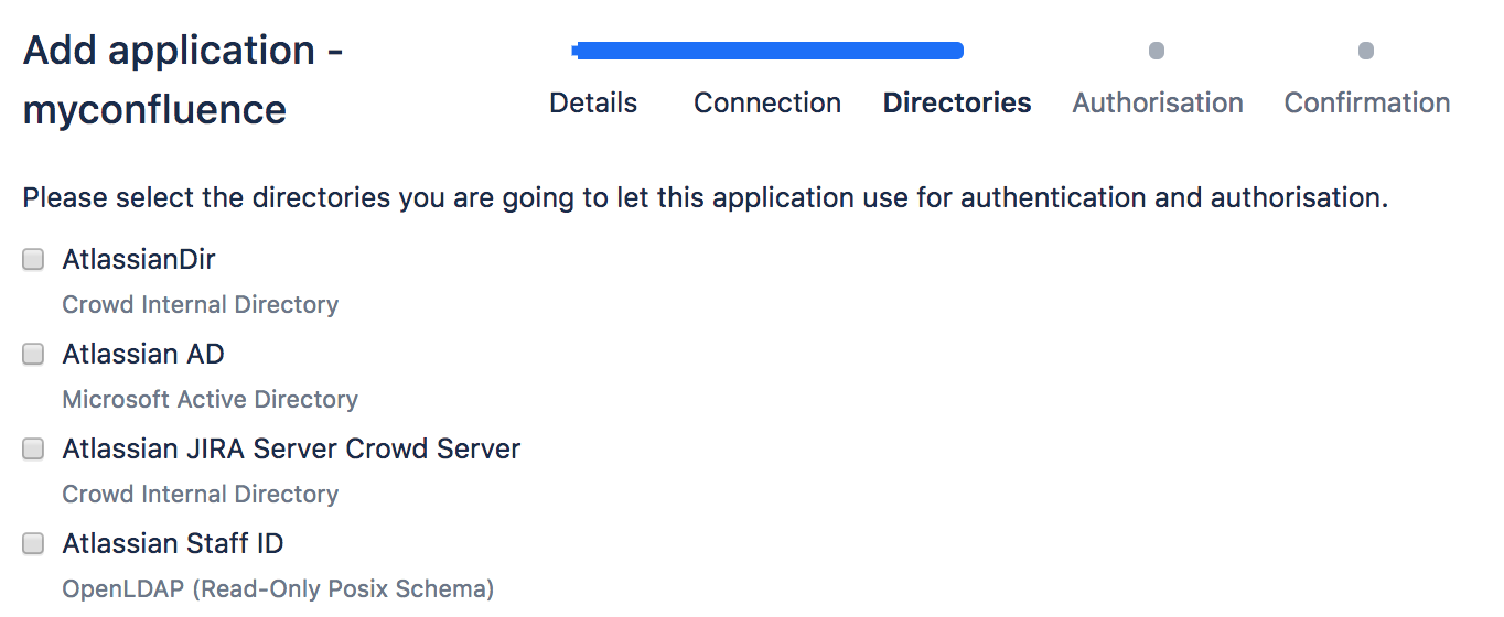 - Consider whether you need to add any directories, users and groups. If so, see the detailed instructions for your application.