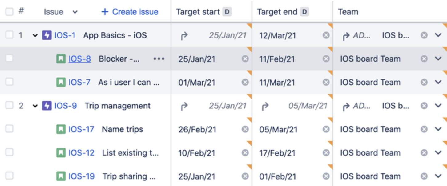 - Issue types — Only show issues of a certain type. What's available depends on the Jira issue types mapped to Advanced Roadmaps.