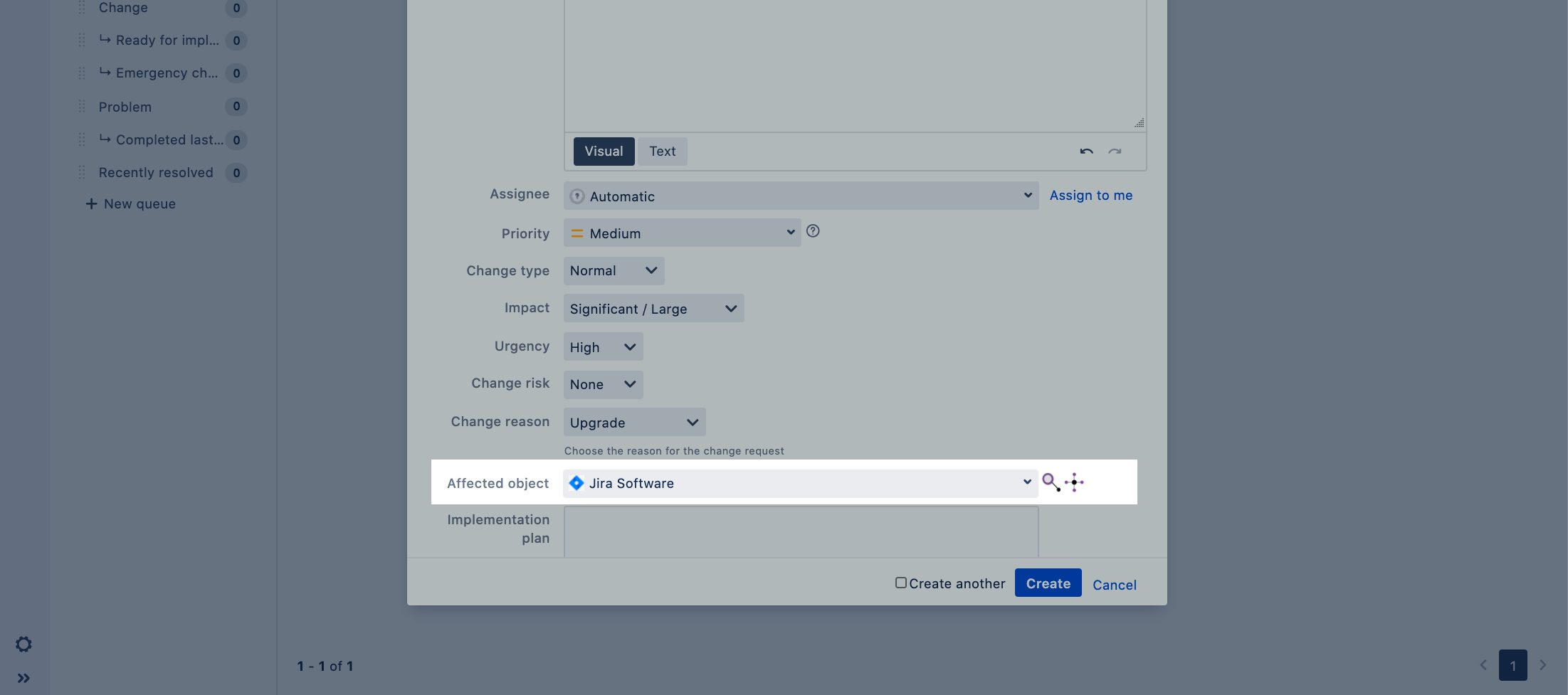 A change request should be opened against something – be it a configuration item, physical server, or some other asset that you need to change or improve. We’ll help you create a basic inventory of assets in Jira Service Management and then link it to your project so you can start including assets in changes.