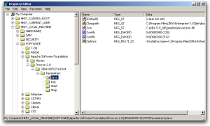 In some versions of Windows, there is no option to add Java variables to the service. In these cases, you must add the properties by viewing the option list in the registry.