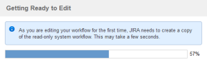 JIRA now makes editing a project's workflow much easier. When you begin editing a project's workflow for the first time, you'll be able to modify that workflow almost immediately, since JIRA automatically makes a copy of the system workflow (jira) and associated workflow scheme for your project, and then associates this new workflow scheme with your project, all from the click of an icon.