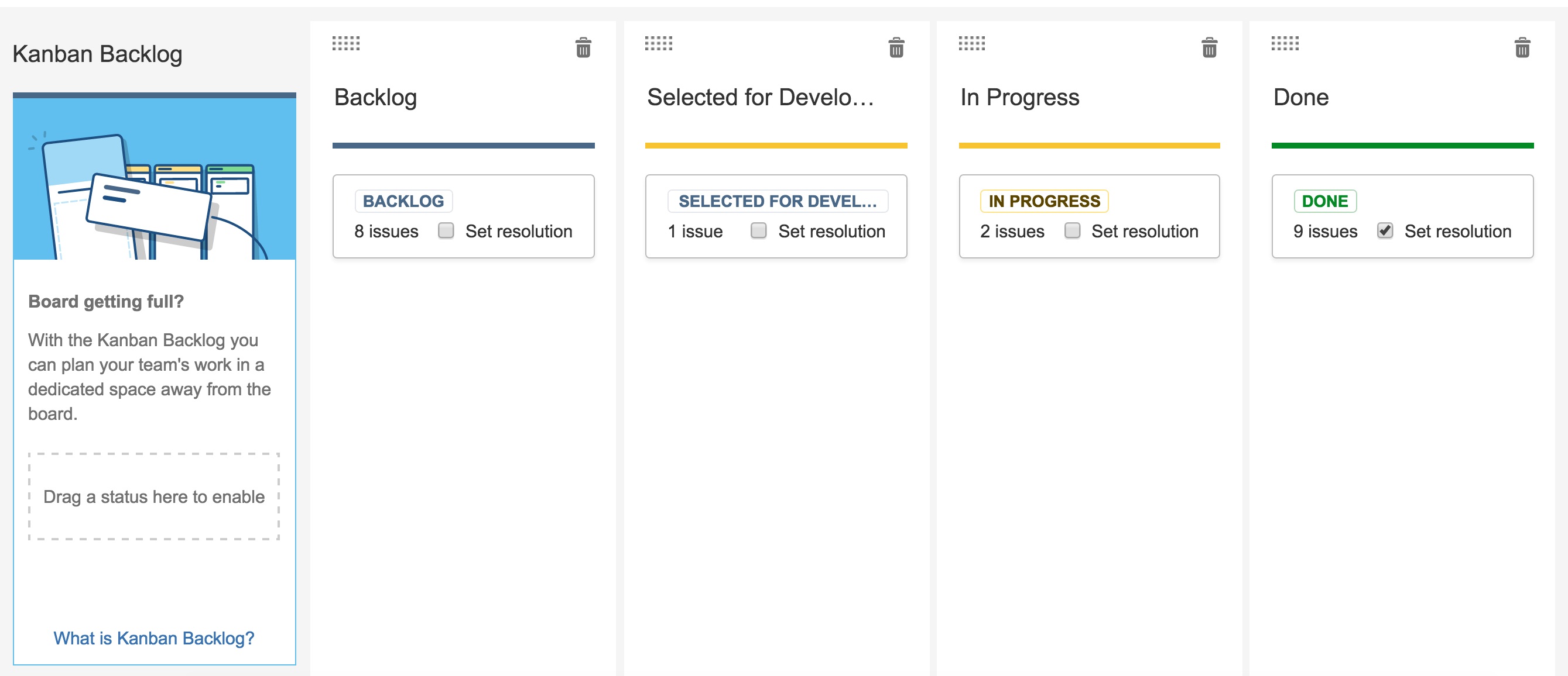 Managing your backlog in the first column of your Kanban board is easy to do — as long as there are only a few issues in your backlog. As your backlog grows, viewing and scrolling through these issues can become difficult.